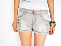 Folded hem; with grunge rips.